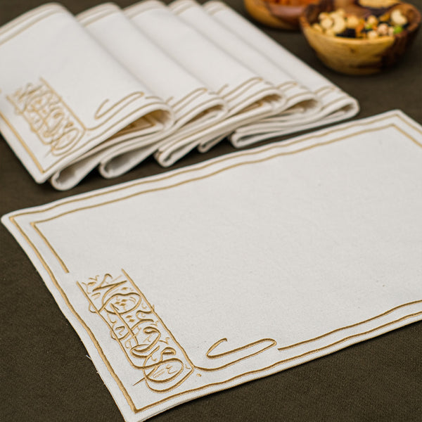 Machine embroidered Machine washable Sold as a set of 6 Dimensions: 46 x 33 cm Material type: blended cotton. Easy to wash & iron.