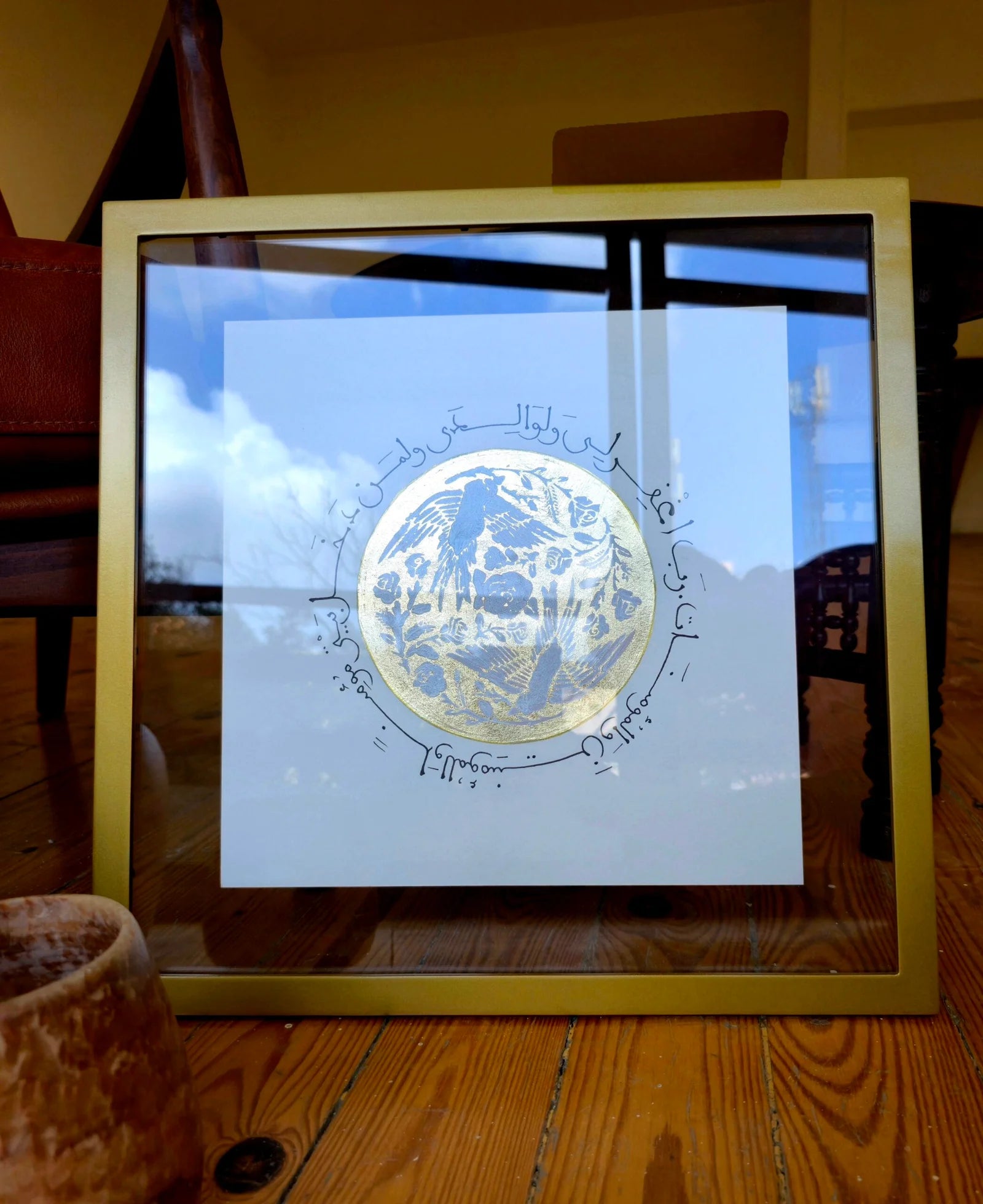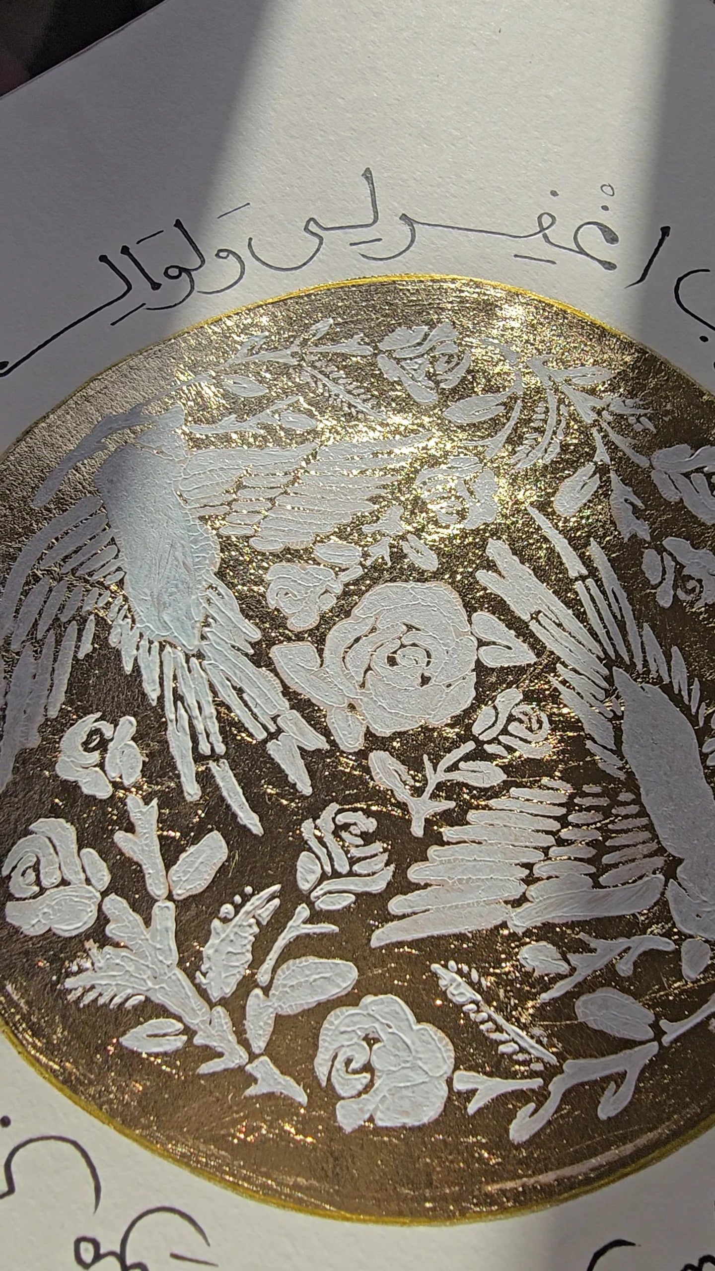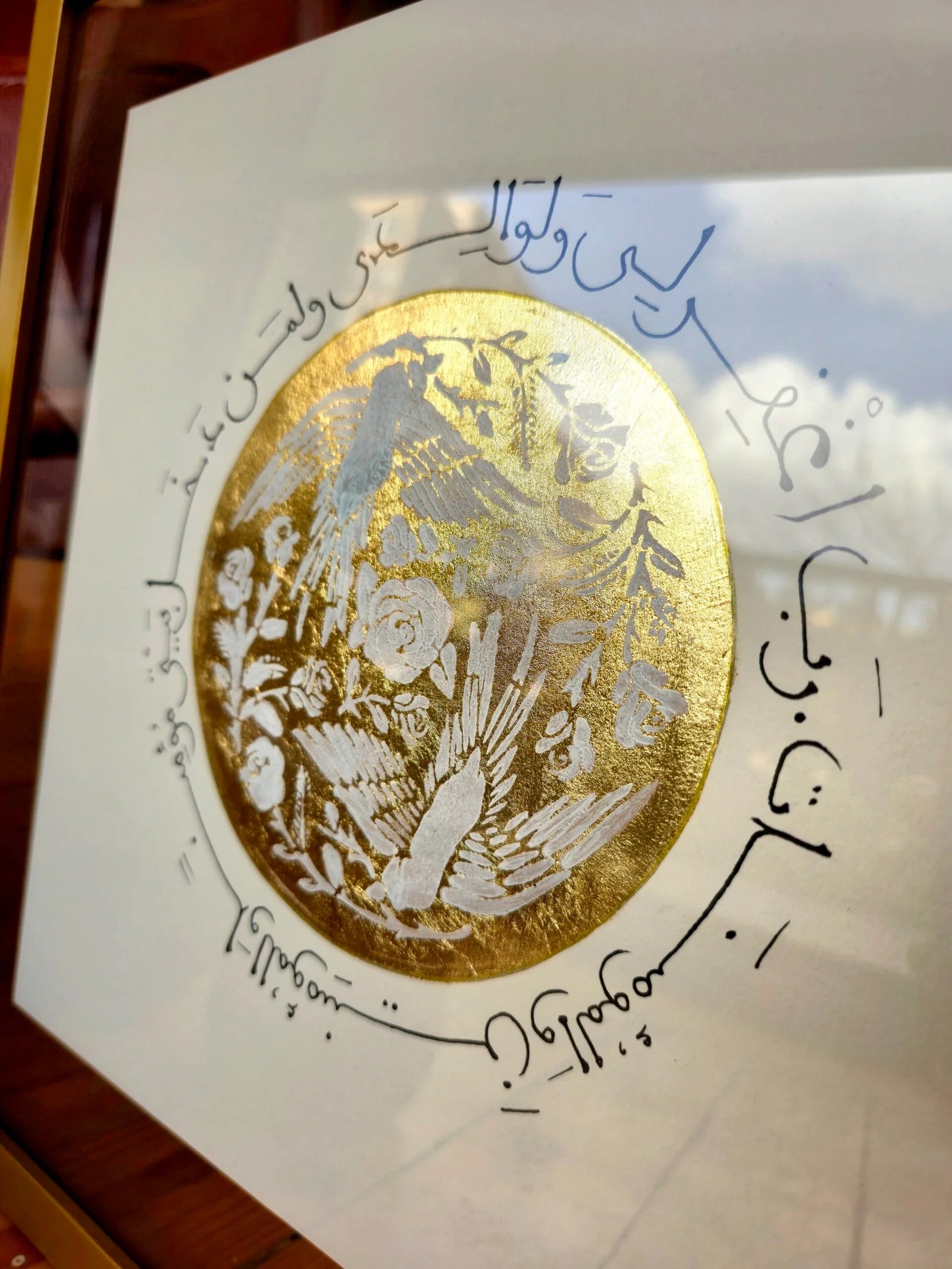 - Handmade tazhib (gold illumination) with genuine gold leaf