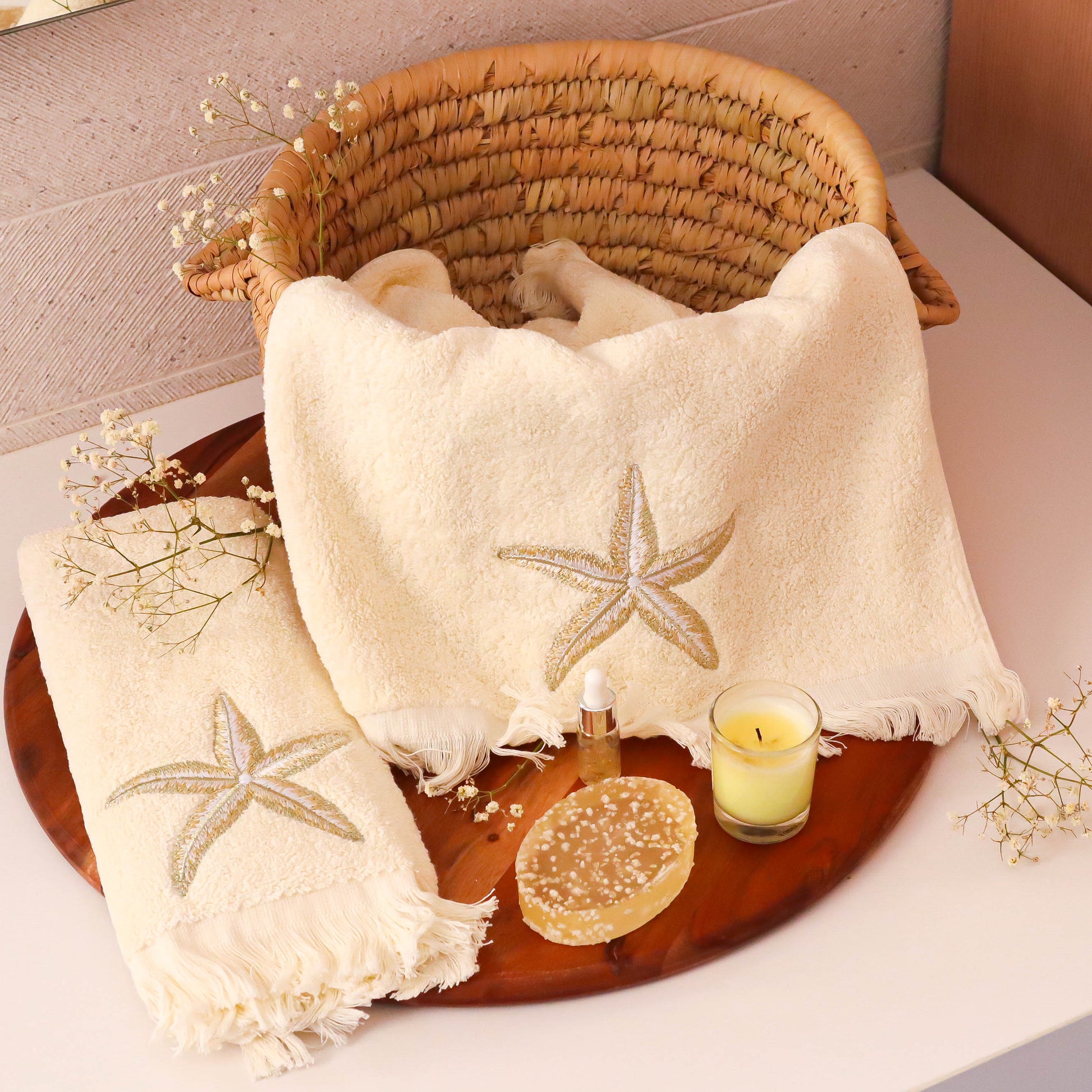 Gold Starfish Guest Towels Set